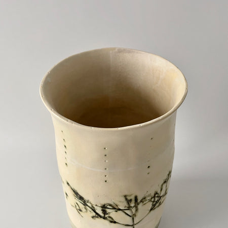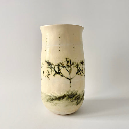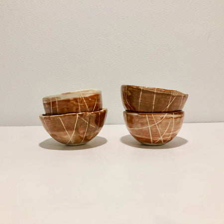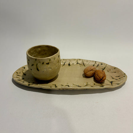 Clay is the material that most embrasses nature, another passion of hers. Her favourite building technique is pinching, the primitive, ancient method that allows her to form objects that reflect her hands and the slower process of building, imbued with nature and soul. She hopes the warm forms that result from this process, will bring beauty and pleasure in their everyday handling.