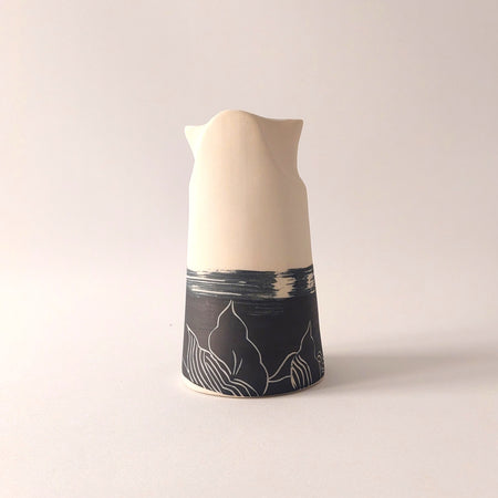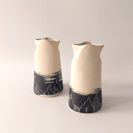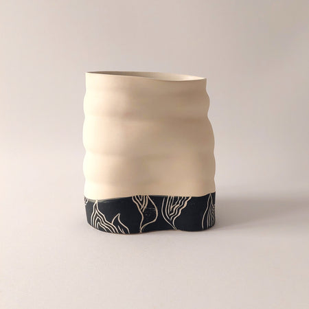 I am Mirka Drapaniotou. I live in Greece and I work as a ceramist in Athens. My first studies in fashion design and long personal engagement with fabric design and plasticity have inevitably contributed to me exploring relevant material and artistic experimentation and eventually discovering ceramic art.